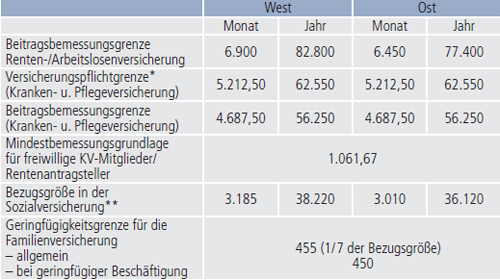 ** Der Betrag West gilt bundesweit für die Kranken- und Pflegeversicherung als Grundlage für die Beitragsberechnung für die freiwillige gesetzliche Krankenversicherung.