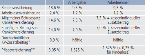 **Besonderheit in Sachsen: Arbeitgeber: 1,025 %, Arbeitnehmer 2,025 % (Kinderlose: + 0,25 %)