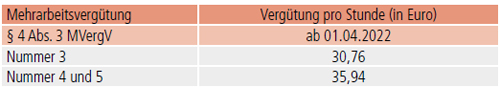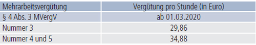 Vergütungssätze nach der Bundesmehrarbeitsvergütungsverordnung