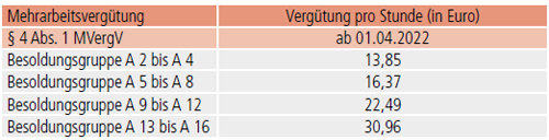 In den Ländern gelten abweichende Vergütungssätze für Mehrarbeit der Beamten, die wir unter www.besoldung-in-bund-und-laendern.de erläutern.