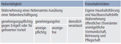 Genehmigungspflichtige/genehmigungsfreie Nebentätigkeiten