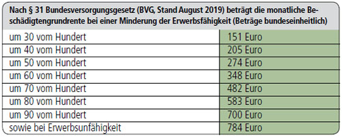 Tabelle: Beschädigtengrundrente (Stand: August 2019)